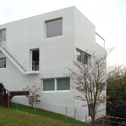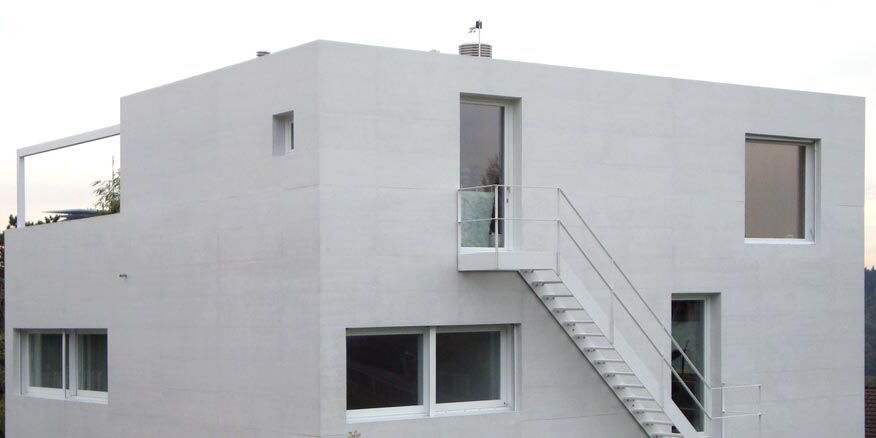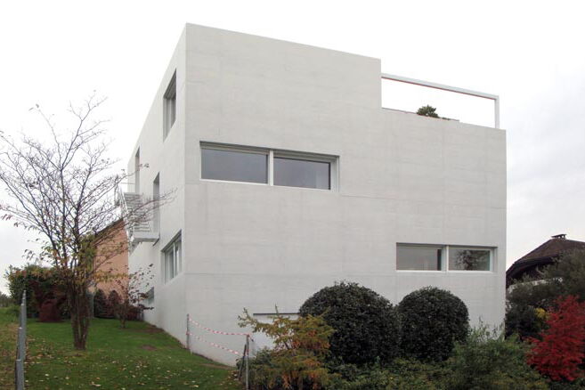 Das Sichtbetonhaus wurde 2003 erbaut und 2011 aufgestockt